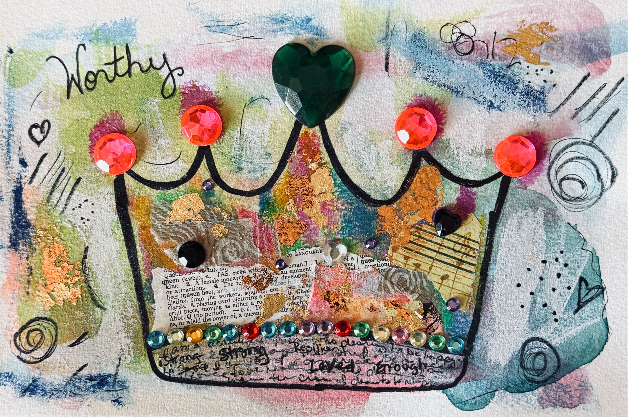 You’ll create a mixed media crown using simple materials, words, and layers that feel meaningful to you.
